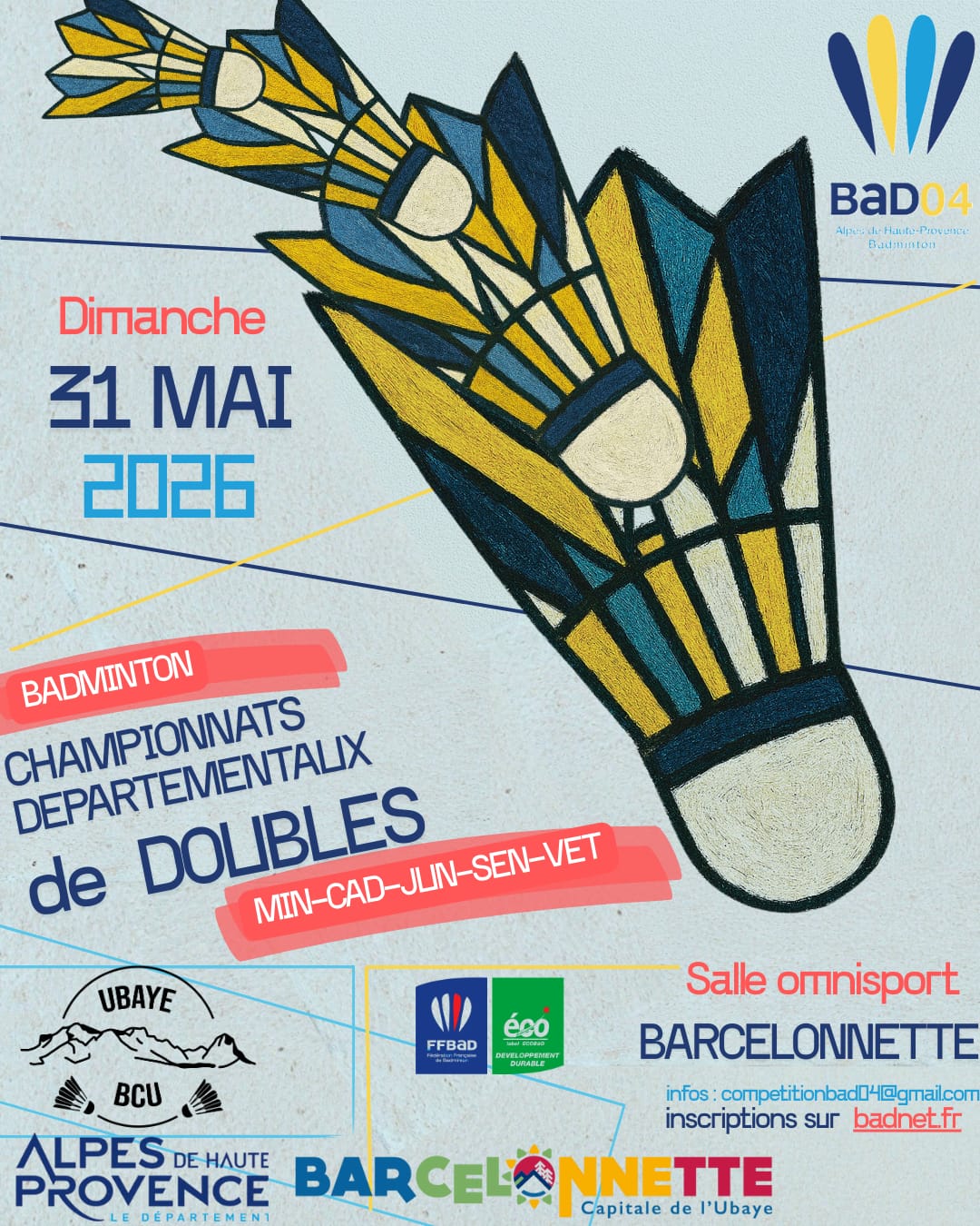 - Doubles : Dimanche 31 mai 2026 - Barcelonnette
