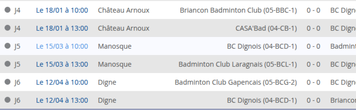 - Mixtes : Samedi 11 avril 2026 - Digne les bains